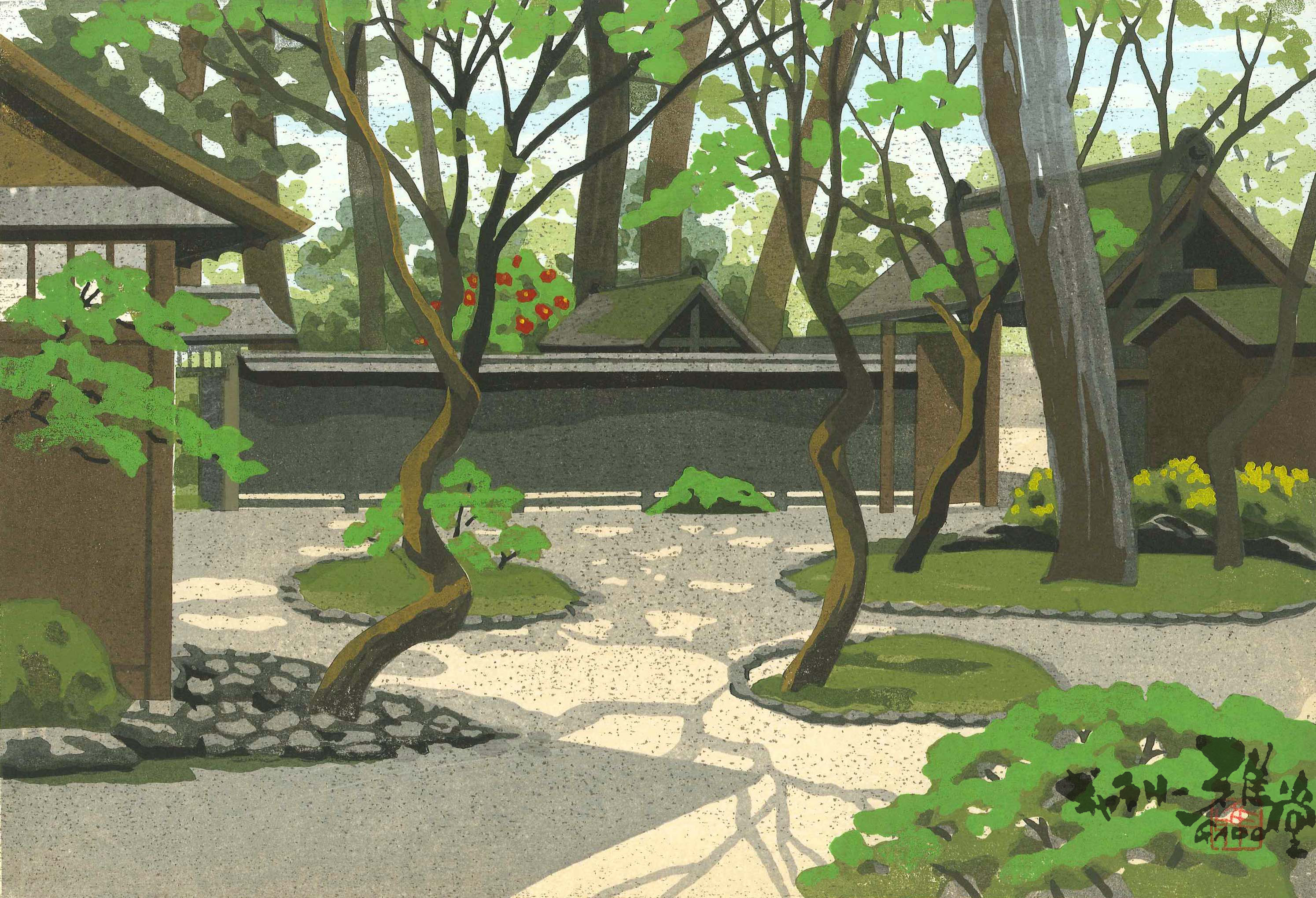 現在は井堂雅夫の作品を中心とした木版画作品とアンティークの浮世絵や実際に使用する版木や彫り摺りの道具、制作工程のビデオなどを展示しております。